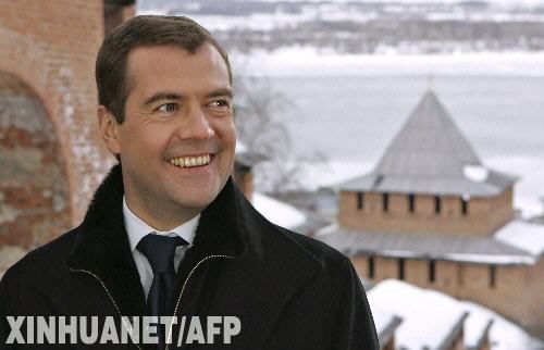 2月27日,俄罗斯第一副总理、总统候选人梅德韦杰夫在俄西部下诺夫哥罗德市参加竞选活动。梅德韦杰夫当天在与选民见面时说,他如果当选俄总统,将继续普京的路线。新华社/法新
