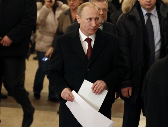 俄罗斯总统候选人、现总理普京3月4日在莫斯科投票